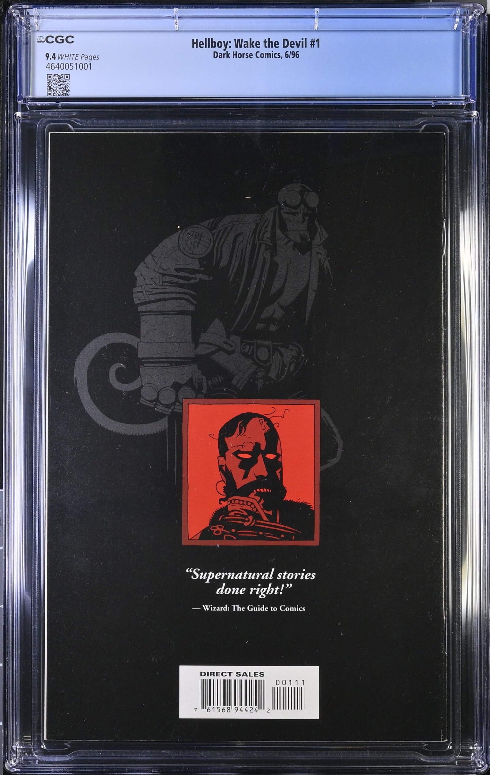 Hellboy: Wake the Devil #1 CGC 9.4$125.00 Tax 1 in stock Hellboy: Wake the Devil #1 CGC 9.4 quantity Add to cart Categories: CGC Comics, Comics Description Additional information Description CGC Cert # 4640051001 Title Hellboy: Wake the Devil Issue 1 Issue Date 6/96 Issue Year 1996 Publisher Dark Horse Comics Grade 9.4 Page Quality WHITE Grade Date 2025-12-11 Label Category Universal Art Comments Mike Mignola story, cover & art Key Comments Backup story by Gary Gianni. Grader Notes spine stress lines cover Additional information Weight 2 lbs Related products Rai – The History of the Valiant Universe #1 (Valiant) $1.00 Tax Add to cart Hellboy Seed of Destruction #2 1994 (CGC Grade 9.0) $100.00 Tax Add to cart Amazing Spider-Man #363 (Signed by Bagley/Emberlin) CGC 9.0 $250.00 Tax Add to cart Ninjak #0 (Valiant) $1.00 Tax Add to cart