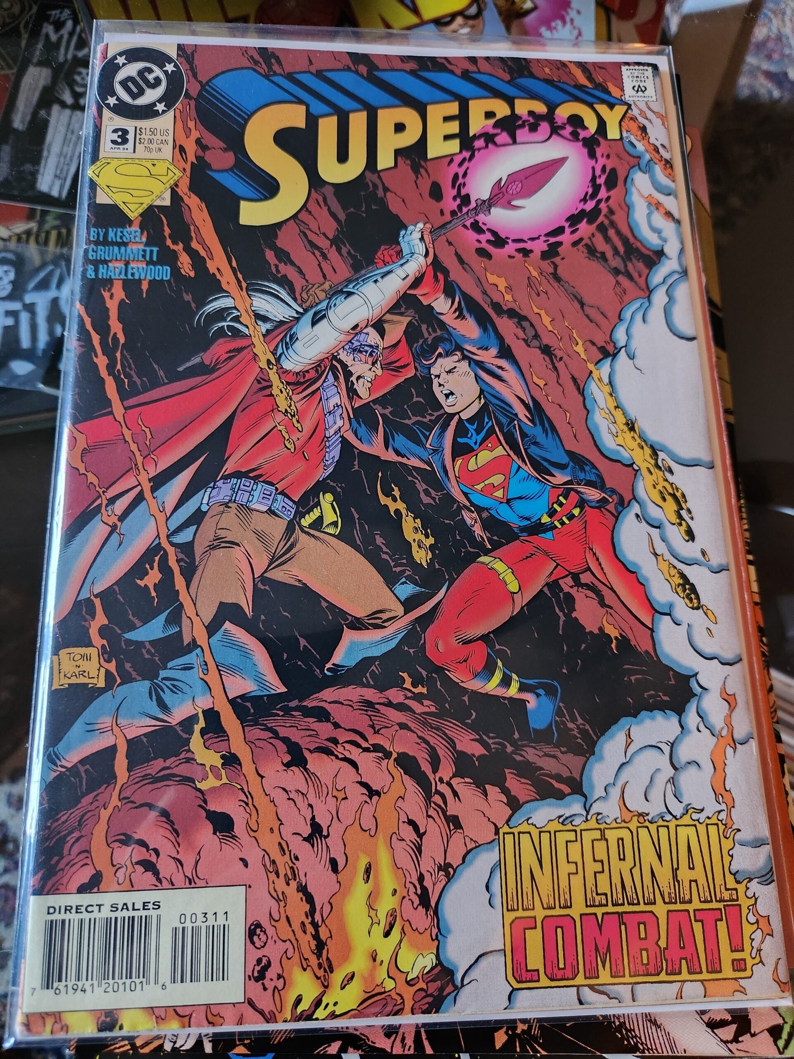 Superboy confronts the mysterious villain who possesses the Spear of Lono. The villain is seeking a mystical gem from a Hawaiian archaeological dig to combine with the spear and become invincible.
