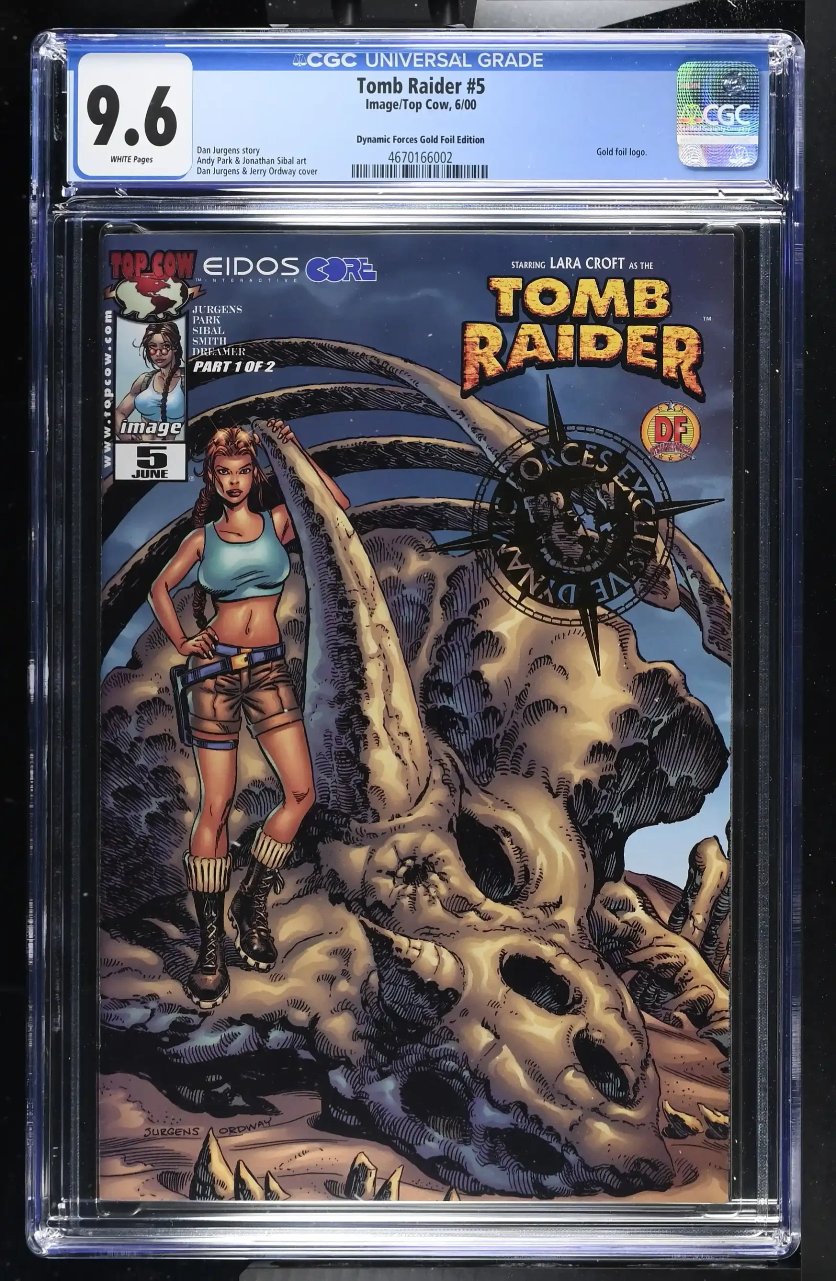 Tomb Raider #5 9.6$70.00 Tax 1 in stock Tomb Raider #5 9.6 quantity Add to cart Categories: CGC Comics, Comics Description Additional information Description CGC Cert # 4670166002 Title Tomb Raider Issue 5 Issue Date 6/00 Issue Year 2000 Publisher Image/Top Cow Variant Dynamic Forces Gold Foil Edition Grade 9.6 Page Quality WHITE Grade Date 2025-12-12 Label Category Universal Art Comments Dan Jurgens story Andy Park & Jonathan Sibal art Dan Jurgens & Jerry Ordway cover Key Comments Gold foil logo. Grader Notes very small bend left bottom of back cover Additional information Weight 1 lbs Related products Butcher Knight #4 (Top Cow) $1.00 Tax Add to cart Psi-Lords #3 (Valiant Comics) $1.00 Tax Add to cart Tomb of Dracula #68 6.5 $75.00 Tax Add to cart Hellboy Seed of Destruction #2 1994 (CGC Grade 9.0) $100.00 Tax Add to cart