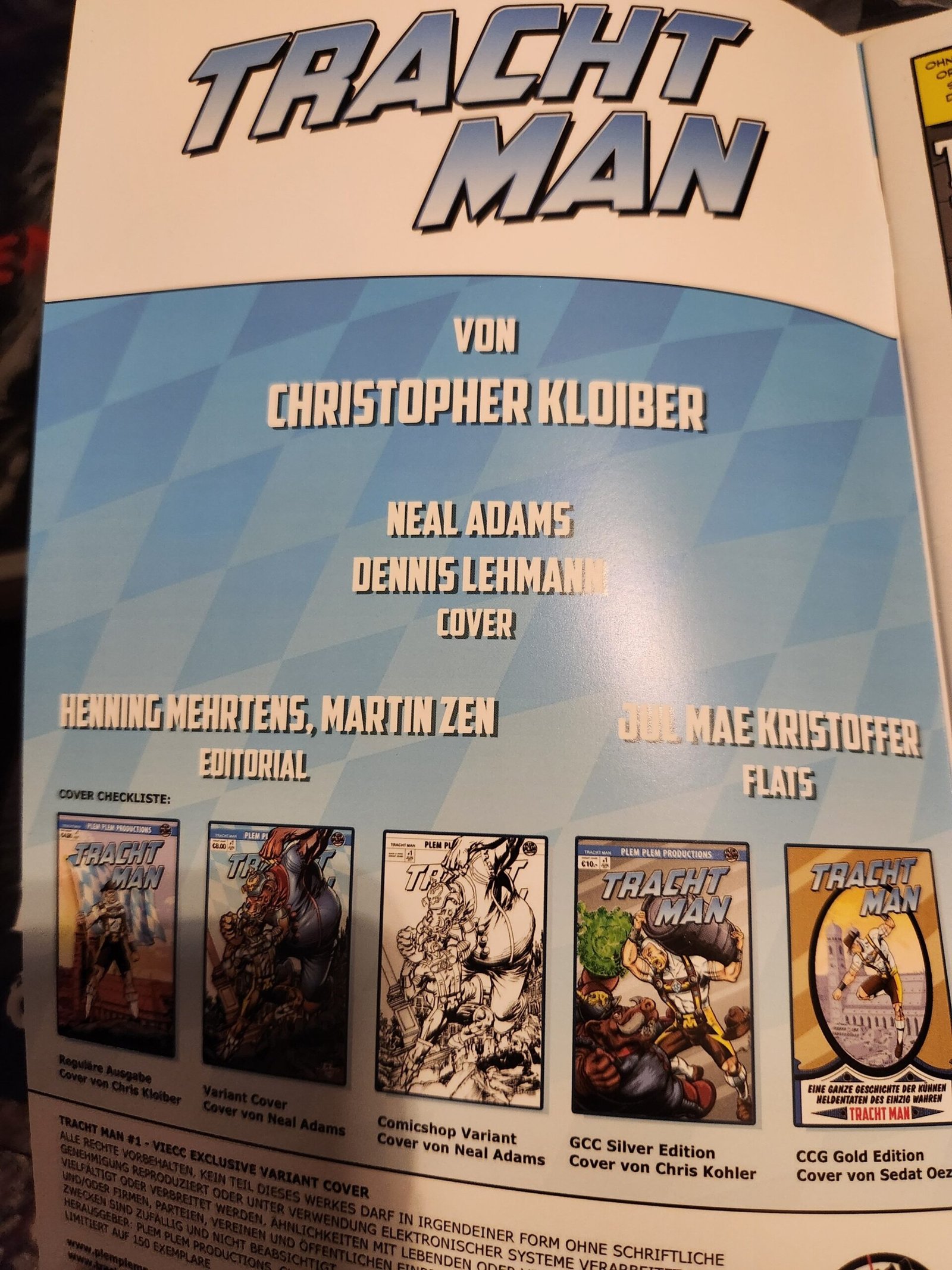 First issue of the comic book Tracht Man (German). Vienna Comicon Exclusive to 150 prints. Signed by Christopher Kloiber.