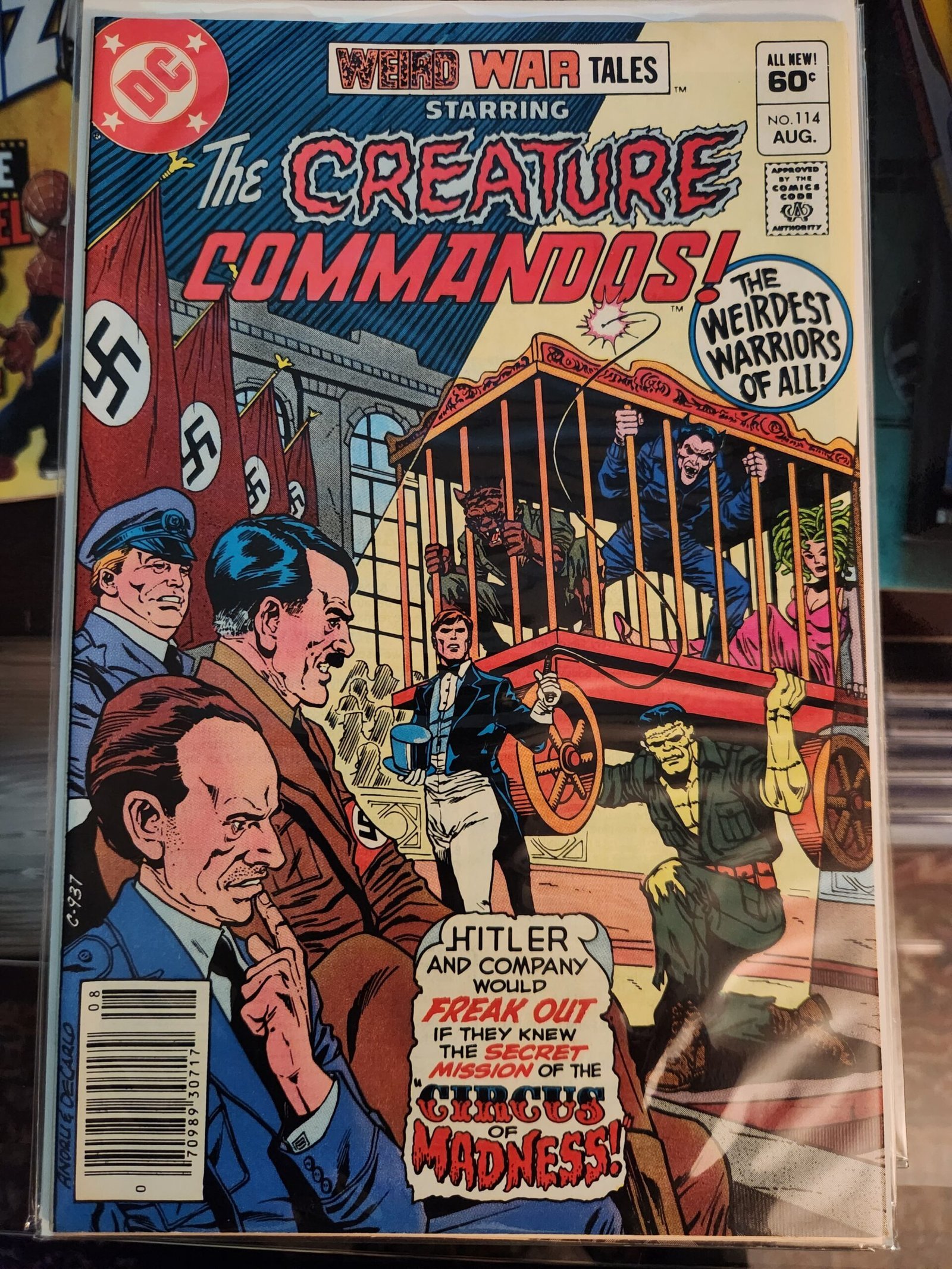 Description: This is a chilling World War II story featuring a direct confrontation with the twisted mind of Adolf Hitler. The tale is set within a bizarre “circus” environment, blending the supernatural and grotesque elements that characterize the “weird war” genre.